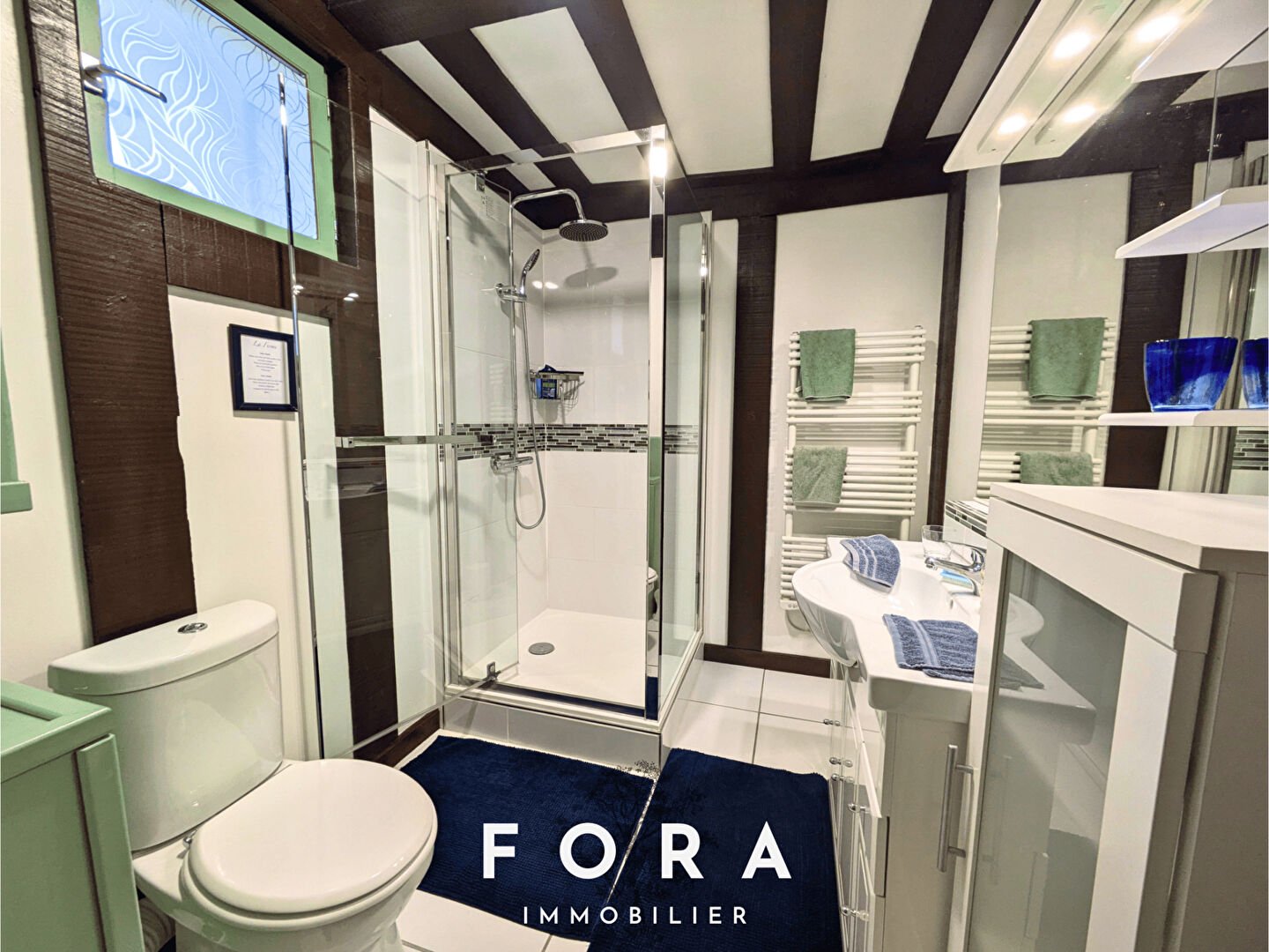 Heading down to the garden level, a landing with direct outdoor access leads to a laundry room and a shower room. This landing also serves as the entrance to the first gîte, which features a 26 m² main room, a shower room, and a separate kitchen. This gîte has a private entrance with direct access to the outdoors. Outside, you’ll find the second gîte, completely independent, with a similar layout: a 27 m² main room, a shower room, and a living area with an open-plan kitchen.